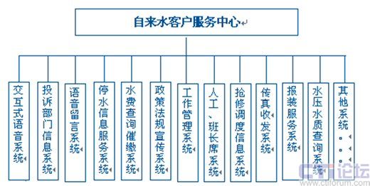 服務中心對外面向用戶服務,對內與整個自來水公司相聯(lián)系,將管理、監(jiān)控、考核、服務結為一體,它還可以把從用戶那里所獲得的各種信息、數(shù)據(jù)全部儲存在龐大的數(shù)據(jù)庫中,并能形成各類分析報表,供領導做分析和決策之用。