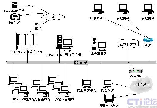 呼叫中心系統(tǒng)的網(wǎng)絡(luò)拓撲結(jié)構(gòu)如下圖所示: