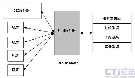 Ο數(shù)據(jù)接口采用三層C/S結(jié)構(gòu),通過構(gòu)建功能強大的應(yīng)用服務(wù)器,把呼叫中心的數(shù)據(jù)流與燃氣公司客戶系統(tǒng)、營業(yè)系統(tǒng)、搶修系統(tǒng)和燃氣調(diào)度系統(tǒng)結(jié)合起來,充分利用了已有系統(tǒng)標準的數(shù)據(jù)接口,實現(xiàn)對后臺數(shù)據(jù)庫的訪問。如圖: