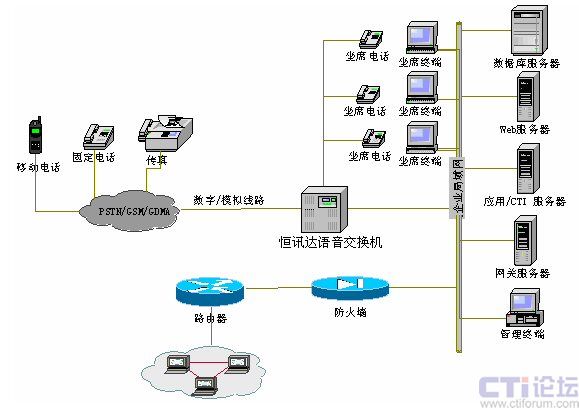 恒訊達(dá)外包呼叫中心系統(tǒng),主要包括前端的自動(dòng)呼叫分配ACD、自動(dòng)語(yǔ)音應(yīng)答IVR、坐席控制、錄音、傳真、多媒體等系統(tǒng)平臺(tái)子系統(tǒng)和業(yè)務(wù)/數(shù)據(jù)庫(kù)系統(tǒng),另外,系統(tǒng)還需要系統(tǒng)維護(hù)和管理系統(tǒng)以及對(duì)外的數(shù)據(jù)接口。