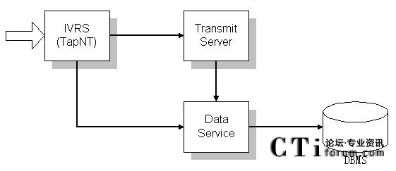后臺(tái)程序使用Data Service 作為數(shù)據(jù)庫(kù)中間插件,TapNt(IVR)負(fù)責(zé)運(yùn)行流程。TapNt(IVR)查詢數(shù)據(jù)要通過Data Service來進(jìn)行。這項(xiàng)設(shè)置的目的在于使數(shù)據(jù)插件得到充分利用。當(dāng)話務(wù)量增多時(shí),可以多開幾個(gè)Data