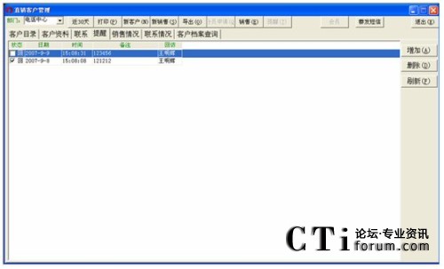 選定記錄并單擊新提醒,可以設(shè)定新的對(duì)該客戶的回訪時(shí)間。