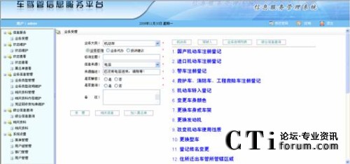 該模塊主要受理三大類(lèi)業(yè)務(wù):咨詢類(lèi)業(yè)務(wù)、代辦類(lèi)業(yè)務(wù)和投訴建議類(lèi)業(yè)務(wù),以及提供業(yè)務(wù)咨詢和業(yè)務(wù)代辦時(shí)的相關(guān)業(yè)務(wù)信息檢索和機(jī)動(dòng)車(chē)、駕駛?cè)司C合信息的查詢驗(yàn)證。