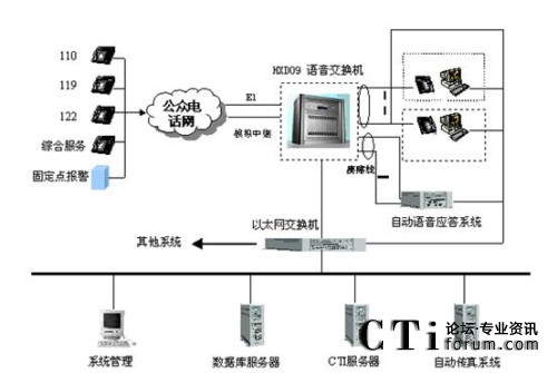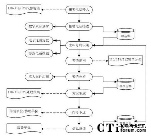 該系統(tǒng)主要分為電信子系統(tǒng)(完成聯(lián)動(dòng)中心與各電信公司之間話音的傳輸、交換和分配,以及主叫號(hào)碼和主叫地址的自動(dòng)查詢和傳輸?shù)龋⒔泳行淖酉到y(tǒng)(統(tǒng)一接聽和處理市民的報(bào)警、求助電話)、指揮調(diào)度子系統(tǒng)(或稱為處警中心,通過直觀的地理信息系統(tǒng)和數(shù)據(jù)庫,可以對(duì)所有的資源和警力分布了如指掌。通過一體化的無線數(shù)據(jù)傳輸和無線調(diào)度臺(tái)進(jìn)行方便的統(tǒng)一管理,指揮和調(diào)度)、信息網(wǎng)絡(luò)子系統(tǒng)(聯(lián)動(dòng)中心的骨干網(wǎng)絡(luò),把各種數(shù)據(jù)數(shù)庫、接處警席位、移動(dòng)的警用車載計(jì)算機(jī)等互聯(lián)在一起,形成一個(gè)強(qiáng)大的信息網(wǎng)絡(luò))、無線指揮調(diào)度通信子系統(tǒng)、大屏幕顯示子系統(tǒng)、地理信息子系統(tǒng)、GPS/GIS子系統(tǒng)。