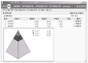 根據(jù)客戶價(jià)值金字塔模型,我們可以進(jìn)行客戶價(jià)值的可視化展現(xiàn),即將已建立好的客戶價(jià)值金字塔模型應(yīng)用于系統(tǒng)中的所有或部分客戶,進(jìn)行計(jì)算、分析,并將結(jié)果按照“金字塔”的方式展現(xiàn)出來(lái)(如圖1所示)。