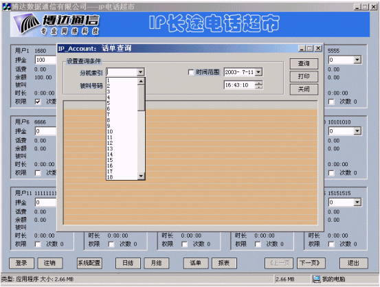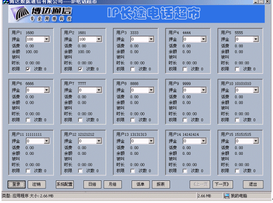 博達(dá)公司在IP電話認(rèn)證的基礎(chǔ)上開發(fā)的IP電話計(jì)費(fèi)計(jì)費(fèi)系統(tǒng),實(shí)現(xiàn)了用戶管理、卡用戶批量生成、費(fèi)率設(shè)置、折扣設(shè)置、話單查詢、帳務(wù)查詢、管理統(tǒng)計(jì)、運(yùn)營分析等功能,為電信運(yùn)營商的運(yùn)營和企業(yè)用戶對(duì)IP電話的內(nèi)部管理和服務(wù)提供了有利條件。