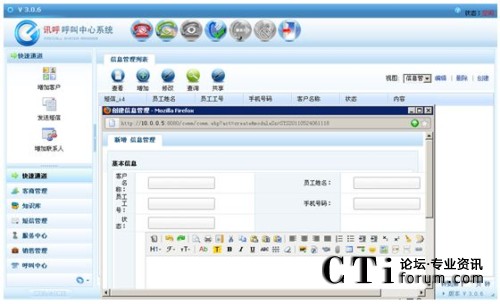 具有來電彈屏功能?蛻糍Y料可以進行新增、修改、刪除、分配、查詢、查看、導(dǎo)入excel、視圖的創(chuàng)建、編輯、刪除等功能。 |