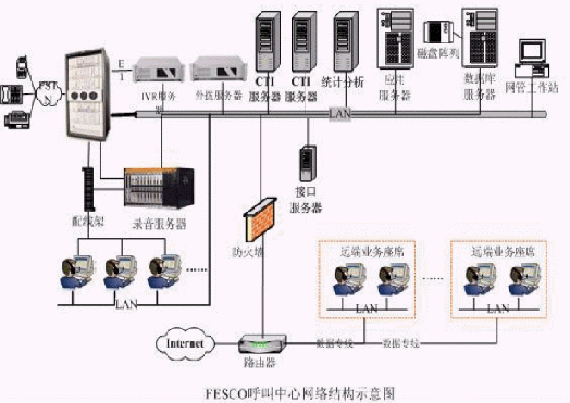 HollyC6呼叫中心解決方案整合了業(yè)界領(lǐng)先的呼叫中心品牌產(chǎn)品,選用Avaya S8700,Genesys中間件、Envox自動(dòng)語音交互設(shè)備、以及錄音質(zhì)檢系統(tǒng),實(shí)現(xiàn)了FESCO呼叫中心的自動(dòng)語音傳真服務(wù)、呼叫排隊(duì)及智能路由、人工電話服務(wù)、智能外撥、及錄音質(zhì)檢的全面的呼叫中心系統(tǒng)平臺(tái)功能。