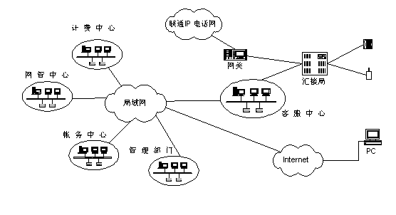圖一:北京聯(lián)通客戶服務中心網(wǎng)絡示意圖