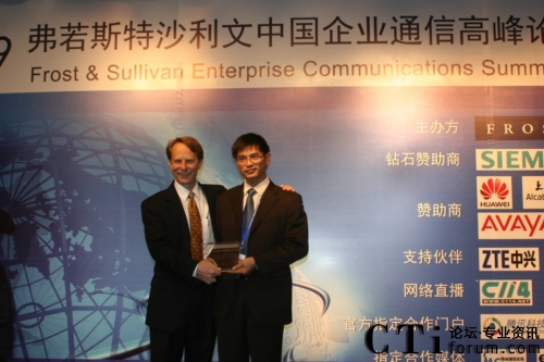 圖:獲得Frost &Sullivan“2009 統(tǒng)一通信解決方案創(chuàng)新獎(jiǎng)”