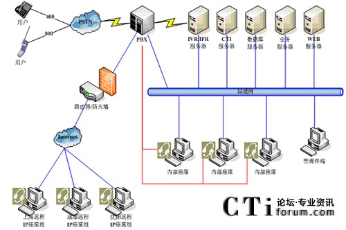 呼叫中心是一種基于CTI技術(shù)、充分利用通信網(wǎng)和計算機網(wǎng)的多項功能集成,并與企業(yè)連為一體的一個完整的綜合信息服務(wù)系統(tǒng),利用現(xiàn)有的各種先進(jìn)的通信手段,效地為客戶提供高質(zhì)量、高效率、全方位的服務(wù)。表面上看,呼叫中心是企業(yè)在最外層加上了一個服務(wù)層。實際上,它不僅對企業(yè)的外部用戶具有服務(wù)功能,同時也為企業(yè)內(nèi)部的管理、服務(wù)、調(diào)度、增值起到非常重要的協(xié)調(diào)作用。