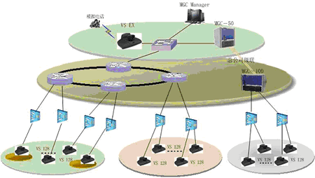 一般來說,在省公司同時參與會議的人數(shù)較多,考慮配置比較大的系統(tǒng),由某一領導召集一些相關成員在此開會;在地市公司同時參與會議的人數(shù)較少,只是一些主要領導參加會議,考慮配置比較小的系統(tǒng);同時,為了實現(xiàn)終端之間管理和傳送音頻、視頻和數(shù)據,需要MCU來協(xié)調終端的工作,并與上級MCU相級聯(lián),擴大會議的規(guī)模。另外,可以增加一套T.120服務器,該系統(tǒng)是利用多媒體技術幫助使用者對工作中的各種信息進行處理,如共享數(shù)據、共享應用程序、實現(xiàn)文件的雙向傳輸?shù),從而構造出一個多人共享的工作空間。以及增加一套VOD系統(tǒng),它集視頻采集、點播、廣播于一體,這樣就可以將視頻會議的內容實時的錄制到本地,也可將一些培訓資料放在視頻點播里,便于對貴公司員工進行培訓,還能通過視頻廣播的功能,讓使用PC機的人員不在會議室,便可以通過瀏覽器實時的看到和聽到正在召開的會議。