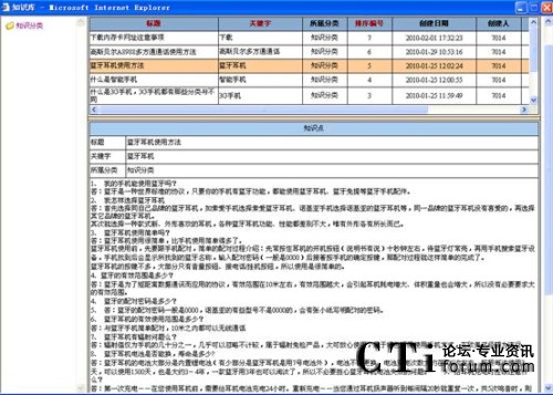知識庫可以由企業(yè)相關人員自行設定、更新最新的產(chǎn)品知識、市場信息和競爭產(chǎn)品比較等信息。強大的搜索功能也使得查詢更加便利。如當客戶提出某問題使得服務人員無法立即回答時,系統(tǒng)還提供相應的填寫欄目以便及時發(fā)送至主管,請求幫助。而當主管對此問題進行回復后,可以選擇將此問題自動放入知識庫,以便同其他人員分享。系統(tǒng)可以根據(jù)問題的點擊率將最感興趣的問題排列在最前,并可以匯總出一定時間內(nèi)最感興趣的問題及產(chǎn)品,作為企業(yè)對服務人員今后培訓的重點。同時,系統(tǒng)將自動記錄每一位客戶的咨詢記錄,及時更新并在客戶再次致電時,顯示在客戶資料當中。