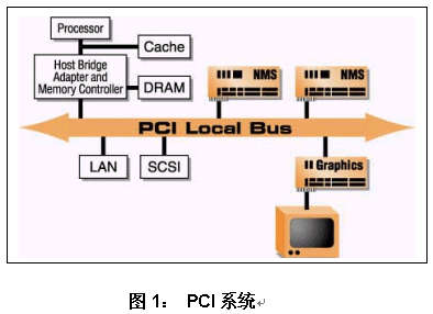 PCI(Peripheral Component Interconnect)本地總線(xiàn)是采用多路地址和數(shù)據(jù)線(xiàn)的高性能32位/64位總線(xiàn)。在采用NMS板卡的系統(tǒng)中,PCI總線(xiàn)用來(lái)在NMS板卡和主機(jī)處理器之間傳遞數(shù)據(jù)和控制信息。其它外圍附加板卡通常與NMS板卡共享總線(xiàn)。(參見(jiàn)圖1)