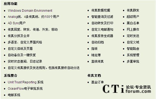 大新銀行Information Technology Division 項目經(jīng)理Benjamin Chu指出:“OceanFax Fax Server具有全面而強(qiáng)大的功能,支持電子傳真及自動傳真,系統(tǒng)易使用和管理;通過與Unit Trust Reporting系統(tǒng)及OceanFlow電子審批系統(tǒng)的整合,理順大新銀行投資基金業(yè)務(wù),實現(xiàn)工作的自動流程。該整合能提高效率、降低成本、保證信息安全及快速帶來投資回報!