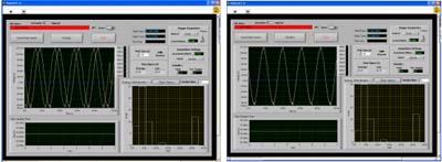 當兩個(或多個)設備一起工作并對時間有精確要求的時候,就需要在它們之間進行同步。同步是基于在兩個設備之間規(guī)定一個共同的時間參考,試想如果將不同音軌的音頻訊號分別錄在不同的磁帶機上,則必須將這兩個磁帶機的磁帶傳送軸鎖定在一起,否則將來撥放出來就會有相位上的誤差,這個過程就稱為同步。假使這兩個設備沒有進行同步,無論它們開始的時間多么一致,也會由于兩臺設備在機械結構的差異而產生時間漂移。同樣的,對于數(shù)據(jù)采集卡也是一樣的概念,甚至在要求上更為嚴格。而如何達到數(shù)據(jù)同步采集,最基本的要求就是不同模塊間要有相同的工作時脈與一致的觸發(fā)信號,而這個相同的時脈信號需來自于共同的外部儀器。下圖中的弦波是兩張數(shù)據(jù)采集卡在同步與異步采集同一信號源所得的波形,在左圖中因異步而存在一向位差,右圖中則是同步觸發(fā)下得到完全重迭的波形。