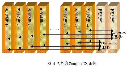 高可靠度CompactPCI 系統(tǒng)的下一步發(fā)展將是去除系統(tǒng)插槽(system slot);因為應(yīng)用程序利用現(xiàn)今系統(tǒng)的IP互聯(lián),PCI總線逐漸成為派不上用場的費用。PICMG協(xié)會現(xiàn)正進(jìn)行CompactTCA的規(guī)格制訂,CompactTCA規(guī)格可望結(jié)合AdvancedTCA(PICMG