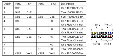 ,此項(xiàng)決定允許PICMG 3.1 組織把光纖信道連接加入到定義以太網(wǎng)連接的章節(jié)中。PICMG 3.1規(guī)范是一個(gè)很好的范例描述一個(gè)信道中的端口如何被使用來支持不同的傳輸協(xié)議。下表描述了一個(gè)信道中的4個(gè)端口在PICMG3.1定義的諸多協(xié)議中如何展現(xiàn)支持不同的傳輸協(xié)議配置。