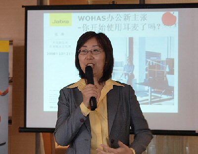2008年10月21日,上海,來自丹麥的全球第一耳麥制造商GN大北歐在位于中山南路的老碼頭廣場內(nèi)為旗下新推出的兩款辦公耳麥產(chǎn)品—Jabra