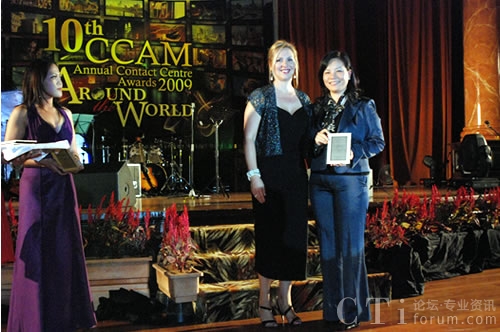 會議期間,飛翱商務(wù)咨詢有限公司市場與客戶服務(wù)部總監(jiān)王淑信代表中國從亞太客服與呼叫中心聯(lián)盟(APCCAL)高級官員的手中接過了象征著2009亞太呼叫中心行業(yè)最高榮譽的2009亞太最佳呼叫中心的獎牌。