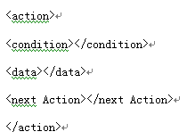 該節(jié)點的約束條件配置到節(jié)點中,當(dāng)前的數(shù)據(jù)和業(yè)務(wù)邏輯配置到[data]節(jié)點中,邏輯的跳轉(zhuǎn)[next Acton]定義著。這樣業(yè)務(wù),數(shù)據(jù),業(yè)務(wù)關(guān)系就通過這種方式串接起來。客戶端處理程序按照[condition]定義好的條件處理當(dāng)前[data]節(jié)點中的數(shù)據(jù)后得到一些新數(shù)據(jù)。