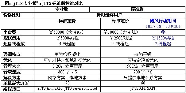 1)為"jTTS標(biāo)準(zhǔn)版"提供進(jìn)一步的優(yōu)惠價格。(詳情請聯(lián)系捷通市場營銷中心)