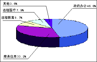其中,視頻會議業(yè)務(wù)是目前階段視頻通信發(fā)展的重點,其主流是基于IP協(xié)議的視頻會議技術(shù)。目前的市場特點是硬件視頻會議已經(jīng)被接受,軟件視頻會議正在成長。但是競爭格局分散,仍然處于“戰(zhàn)國時代”,還沒有一家公司處于絕對的統(tǒng)治地位。當前視頻會議的主要應(yīng)用場所分布如圖1。