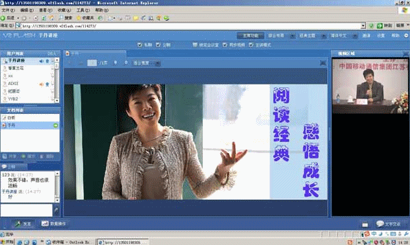 CTI論壇(ctiforum)1月21日消息(記者 張塵):2010年1月14日,江蘇省女性大講堂2010年第一集----于丹“閱讀經(jīng)典,感悟成長”專題講座在中國移動江蘇綜合廳成功舉行。據(jù)悉,《閱讀經(jīng)典 感悟成長》是“全球通VIP名家講堂”聯(lián)手于丹推出的全國大型巡講式講堂,已先后在深圳、上海、蘭州、泉州、武漢、合肥等地進行了講演。截止目前,全球通已成功舉辦“全球通VIP大講堂”25場,參與人數(shù)累計達上萬人次,先后邀請到了李肇星、張召忠、紀連海等專家學(xué)者擔(dān)任主講嘉賓。