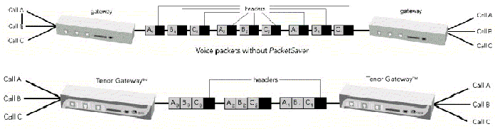saverTM會將同一時間通話中將同一個目的地的所有語音IP包的包頭部分共享,這樣可以節(jié)省許多頻寬,并加快設(shè)備運作的速度。經(jīng)過實驗證明:只需三方電話就可改善40%的頻寬使用效率。此特色讓Quintum