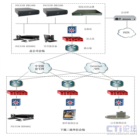 在信息高度發(fā)達(dá)的今天,企業(yè)辦公網(wǎng)絡(luò)化、自動化和信息共享已成為衡量一個企業(yè)現(xiàn)代化管理水平的標(biāo)志。隨著中交集團(tuán)信息化的發(fā)展,急需一套視頻會議系統(tǒng)實(shí)現(xiàn)總部和下屬公司之間的及時的信息溝通。經(jīng)過對自身使用需求、特點(diǎn)的分析,中交集團(tuán)決定直接選用業(yè)界最新的視頻會議高清標(biāo)準(zhǔn)建設(shè),而且要和集團(tuán)二級單位已構(gòu)建的品牌不一的標(biāo)清系統(tǒng)互連。