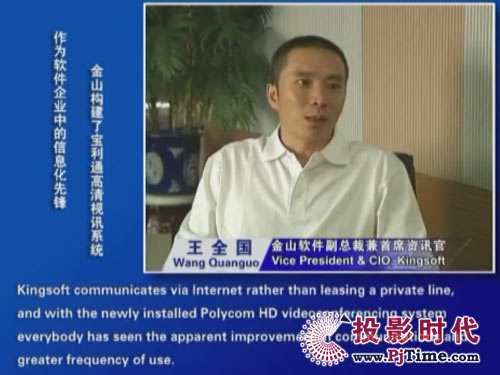 金山軟件副總裁兼首席資訊官王全國先生說道:“對于軟件行業(yè)來說,及時、高效的溝通是保持競爭優(yōu)勢的重要前提。相比之前使用的標清產(chǎn)品,寶利通高清視頻會議系統(tǒng),提供了完全不同的體驗,流暢的高清晰畫面猶如真實的面對面溝通。而且我們公司并沒有申請專線,所有的應用都是基于公網(wǎng)實現(xiàn)的。另一方面,新型全中文定制菜單的運用,令我們使用起來非常方便,這更提高了我們使用視頻通信手段實現(xiàn)異地溝通的熱情!