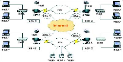 3.系統(tǒng)內(nèi)用戶發(fā)送傳真說明:集團(tuán)A區(qū)的用戶如果發(fā)送本地傳真,則在集團(tuán)A區(qū)的e-FAX網(wǎng)絡(luò)傳真機(jī)收到任務(wù)請求后,通過本地的PSTN網(wǎng)絡(luò)發(fā)送傳真,傳真發(fā)送成功后,系統(tǒng)自動給發(fā)送人一份傳真通報(bào),發(fā)送完成;集團(tuán)A區(qū)的用戶如果發(fā)送外地傳真,例如發(fā)送到集團(tuán)D區(qū),集團(tuán)A區(qū)的e-FAX網(wǎng)絡(luò)傳真機(jī)會自動根據(jù)收到的任務(wù)請求信息進(jìn)行判斷,根據(jù)判斷的信息,將發(fā)送傳真請求和相應(yīng)的傳真文件通過Internet路由到集團(tuán)D區(qū)的e-FAX網(wǎng)絡(luò)傳真機(jī),集團(tuán)D區(qū)的網(wǎng)絡(luò)傳真機(jī)收到訊息后,會自動通過本地的PSTN發(fā)送傳真任務(wù),發(fā)送結(jié)果會自動通報(bào)到集團(tuán)A區(qū)的發(fā)送人,發(fā)送完成。同理,在集團(tuán)的其他區(qū)域內(nèi)的發(fā)送傳真請求都會自動路由,判斷發(fā)送方式,從而完成發(fā)送任務(wù)。