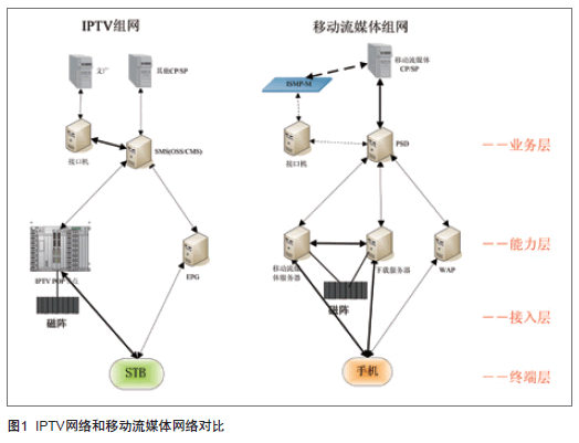 如圖1所示,左邊為IPTV網(wǎng)絡(luò),右邊為移動(dòng)流媒體網(wǎng)絡(luò)。