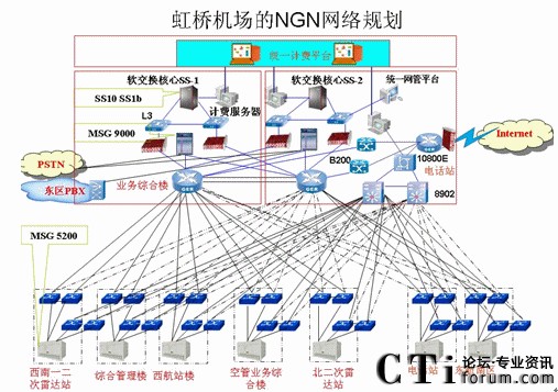 虹橋機(jī)場程控交換機(jī)新建和擴(kuò)容項(xiàng)目,實(shí)際上是一個(gè)包含多業(yè)務(wù)的項(xiàng)目和系統(tǒng),即以數(shù)據(jù)網(wǎng)絡(luò)作為基礎(chǔ)承載平臺,軟交換作為核心技術(shù),為用戶提供了豐富的業(yè)務(wù),很好地解決了話音、數(shù)據(jù)業(yè)務(wù)的融合。