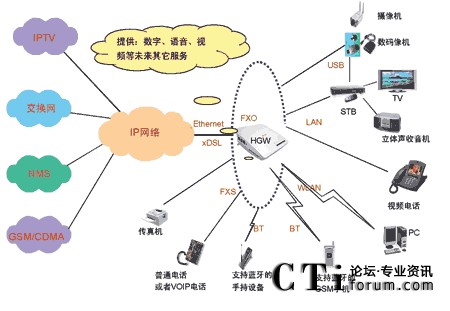 - 家庭網(wǎng)絡(luò)的外圍設(shè)備—STB、PC、可視電話、Bluetooth手機等;