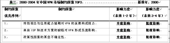 三、2000-2004年度,中國VPN市場發(fā)展的驅(qū)動與制約因素