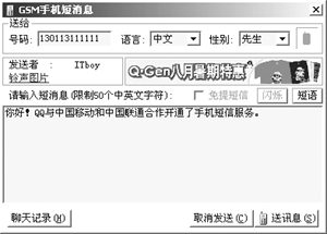 目前IM與各種移動終端設(shè)備的結(jié)合也越來越多。使用QQ向手機(jī)發(fā)送短信需要手機(jī)開通移動QQ服務(wù),單擊對方頭像圖標(biāo),在打開的快捷菜單中選擇“手機(jī)短訊”命令,在打開的對話框中輸入信息,然后點(diǎn)擊發(fā)送即可完成,這時對方的手機(jī)就可以收到一個消息。給BP機(jī)發(fā)短訊也是一樣,不過對方的BP機(jī)服務(wù)臺必須是QQ所支持的情況下才行。當(dāng)對方的手機(jī)收到你發(fā)來的短信后還可以回復(fù),這時候您的QQ會彈出“查看手機(jī)短訊”的窗口來,非常方便。