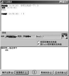 這是作為即時通訊軟件的最基本的功能。從發(fā)送消息的長短來看:QQ一次最多可發(fā)送450個漢字,而MSN最多也只有 400 個字符(200個漢字);同為中文界面的QQ與MSN,卻采用了完全不同的設(shè)計思路。從界面上來看,QQ采用“對話模式”和“普通模式”兩種(如圖1)。而MSN中只有一種方式。對于用慣了QQ的網(wǎng)友來說,可能會將一句并沒說完的話發(fā)送出去,而按下“Ctrl+回車”僅僅是起換行作用。從發(fā)送字符格式的控制上,MSN無疑是占盡上風(fēng),不僅支持字體、字號大小以及字色的設(shè)置,這一點普通網(wǎng)友或許并不多用,但MSN能夠?qū)⒅T如“:)”之類的圖示符號自動轉(zhuǎn)換為“笑臉”等表達(dá)心情和表情的圖形,這點功能的確是非常棒的一種設(shè)計。