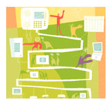 俗話說,多多益善。但是當(dāng)談到多個網(wǎng)絡(luò)的管理或費用承擔(dān)等問題時,恐怕大多數(shù)人都會同意一個網(wǎng)絡(luò)要比兩個或者三個更為經(jīng)濟有效。這其實是很容易理解的----當(dāng)數(shù)據(jù),語音和視頻能夠利用同一個網(wǎng)絡(luò)進行傳輸?shù)脑,還有什么必要在每個桌子拖上一大堆電線,讓公司維護三五套網(wǎng)絡(luò)硬件,還要養(yǎng)活好幾組技術(shù)支持隊伍呢?更何況一個綜合性的網(wǎng)絡(luò)還能集中精力為每個用戶提供更好的服務(wù)?于是,IP電話應(yīng)運而生,這種技術(shù)讓很多公司有機會利用現(xiàn)有的網(wǎng)絡(luò)框架贏得更大的利益。