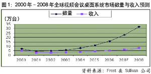 國內(nèi)的研究機構(gòu)也不甘落后,對2002年內(nèi)地視頻會議市場銷售額的預(yù)測高達20億至40億元人民幣不等。而眾多廠商也一致認(rèn)為,未來的一段時間將成為視頻通信,尤其是視頻會議市場發(fā)展的黃金時期。