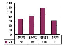 四類群體的數(shù)量總體分布如圖所示: