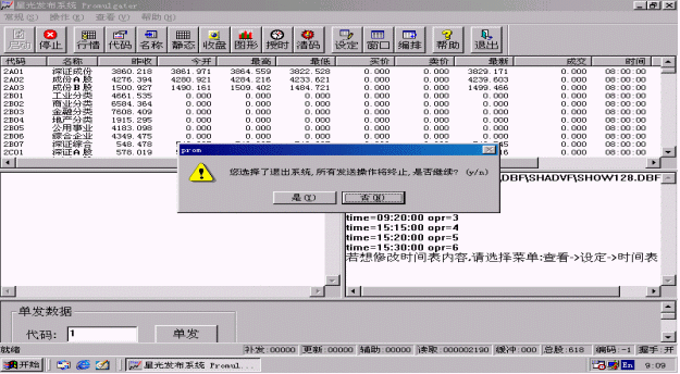因為要發(fā)送歷史圖形,所以系統(tǒng)要求每天在收市以后作一次收盤作業(yè)。