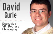 他作為路透社協(xié)作服務部負責人、微軟前高層領導正在試圖將路透消息服務變?yōu)楹蛯κ指偁幍脑囼瀼S。自從2003年4月份加盟路透以來,Gurle已經敲定了和美國在線即時消息器