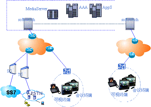 該方案除了提供點對點可視業(yè)務,還能充分利用軟交換設備的互通能力,可視終端可以和PSTN網絡進行互通,以及和其它的IAD終端進行互通,避免了單獨建立一個可視網絡而帶來的經營風險。