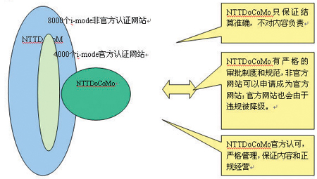要解決上述問題需要一個系統(tǒng)化的進(jìn)程,我們可以借鑒NTT DoCoMo的i-mode的管理模式,如圖5所示,這種管理模式的核心思路是將SP分成官方和非官方分別管理,并建立升降級制度,鼓勵SP升級。這樣做的好處是:1.明確運(yùn)營商與SP的關(guān)系;2. 明確用戶投訴的對象;3. 降低SP進(jìn)入門檻,鼓勵SP開發(fā)業(yè)務(wù)。