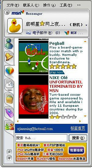 3) 拼接代替加強,F(xiàn)有應(yīng)用的簡單決定了IM軟件本身的簡單,因此IM本身變得不受關(guān)注,廠商所作的大多是功能拼接,例如MSN加強聯(lián)網(wǎng)游戲,QQ傍上移動。甚至可以認(rèn)為,IM本身已經(jīng)被置于次要位置。