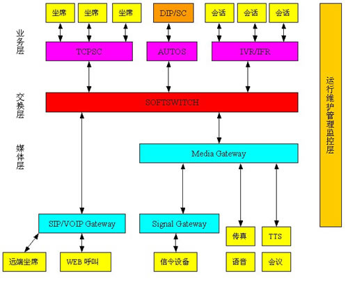 2003 Server操作系統(tǒng)上的平臺軟件實(shí)現(xiàn)CallCenter所需的功能:ACD,CTI,IVR。CT Ways與傳統(tǒng)CallCenter平臺的在軟件方面的最大區(qū)別是平臺軟件運(yùn)行在網(wǎng)格計(jì)算環(huán)境下,TCP/IP作為網(wǎng)絡(luò)通信協(xié)議。在硬件方面的區(qū)別是IVR硬件資源可與信令及交換資源合用。
