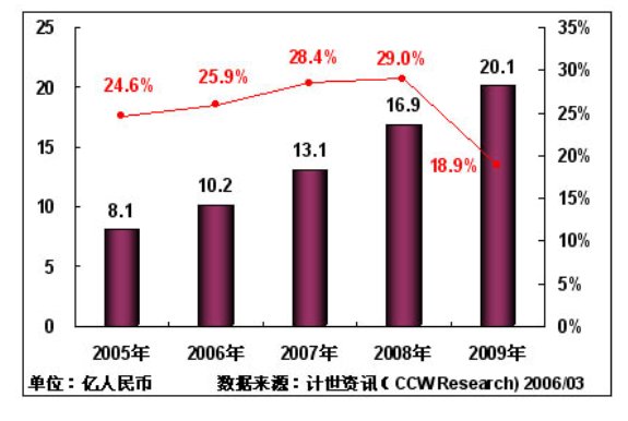 計(jì)世資訊(CCW Research)預(yù)計(jì):2006年中國城市應(yīng)急聯(lián)動(dòng)系統(tǒng)IT投資將保持25.9%的增長率,投資規(guī)模將達(dá)到10.2億元;由于"十一五"規(guī)劃的實(shí)施,以及數(shù)字奧運(yùn)進(jìn)入關(guān)鍵建設(shè)階段,預(yù)計(jì)在2007年,中國城市應(yīng)急聯(lián)動(dòng)系統(tǒng)增長率達(dá)到28.4%,2008年增長率達(dá)到29.0%;到2009年中國城市應(yīng)急聯(lián)動(dòng)系統(tǒng)將進(jìn)入穩(wěn)定增長階段,IT投入將達(dá)到20.1億元。