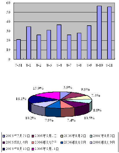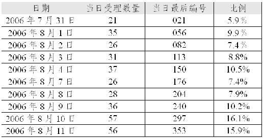 《通告》規(guī)定,擬在第一階段調(diào)整的SP代碼主要是已經(jīng)基礎(chǔ)運(yùn)營(yíng)商分配并已開通、且希望原代碼后4位與新代碼后4位保持一致的。在《通告》規(guī)定的提交申請(qǐng)有效時(shí)間內(nèi)(2006年7月31日8時(shí)至2006年8月11日17時(shí)),信息產(chǎn)業(yè)部共受理符合《通告》要求的代碼調(diào)整申請(qǐng)353份(有關(guān)信息詳見附表1),共涉及申請(qǐng)單位353家、擬申請(qǐng)SP代碼344個(gè)。