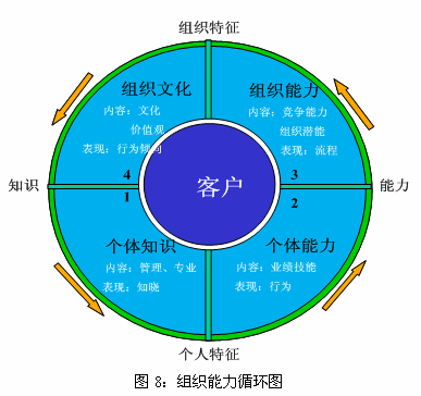 組織能力循環(huán)圖說明,管理者不僅要關注對組織中個體層次特性的管理,如個體知識、個體能力,更要關注組織層次特性的管理,如組織能力和企業(yè)文化。只有管理者將目光由個體能力轉向組織能力時,即更注重組織層次的能力建設時,組織才會真正地成長和發(fā)展。